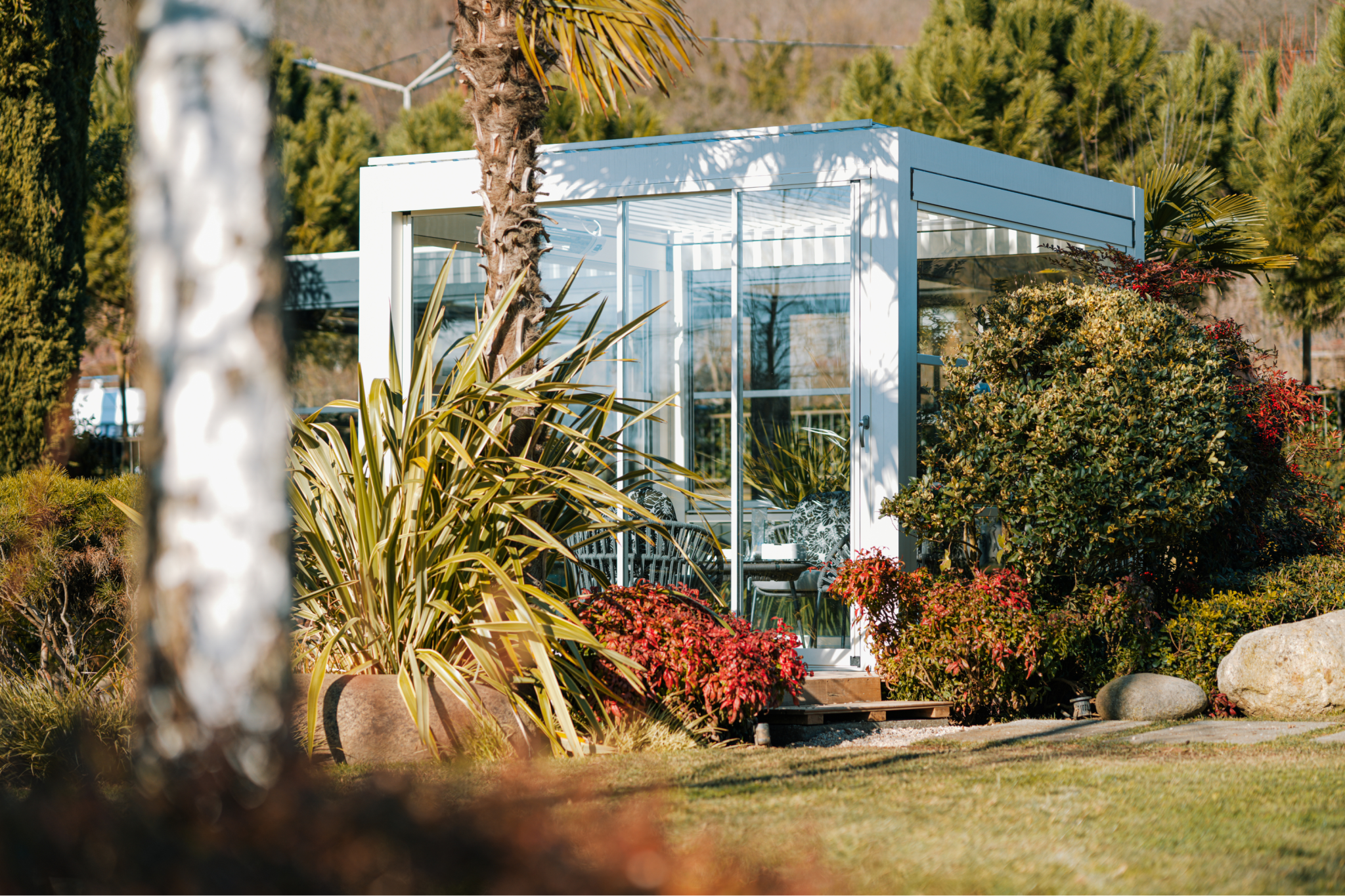 Változtassa lakótérré külső tereit időjárástól függetlenül. A napfény szabályozható a lamellák forgatásával vagy elhúzásával (típustól függően). A 100%-ban vízálló tető és a beépített rejtett vízelvezetés garantálja, hogy a csapadék nem jut be a lefedett területre. Hóbírás mérettől és típustól függően akár 336 kg / m2.