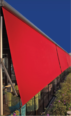 Az oldalról beérkező napfényt csökkenthetjük függőleges árnyékolókkal. A teljes kazettás árnyékoló és a Ferrari Soltis szövet, árnyékot biztosít a kilátás megzavarása nélkül.