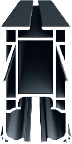 A különálló első, vízszintes gerenda tartja a tetőszerkezet teljes súlyát, mentesítve a csatornát a nyomás alól. Ezen kívül ez a profil tartja az üveg szerkezet és az oldal árnyékolókat.